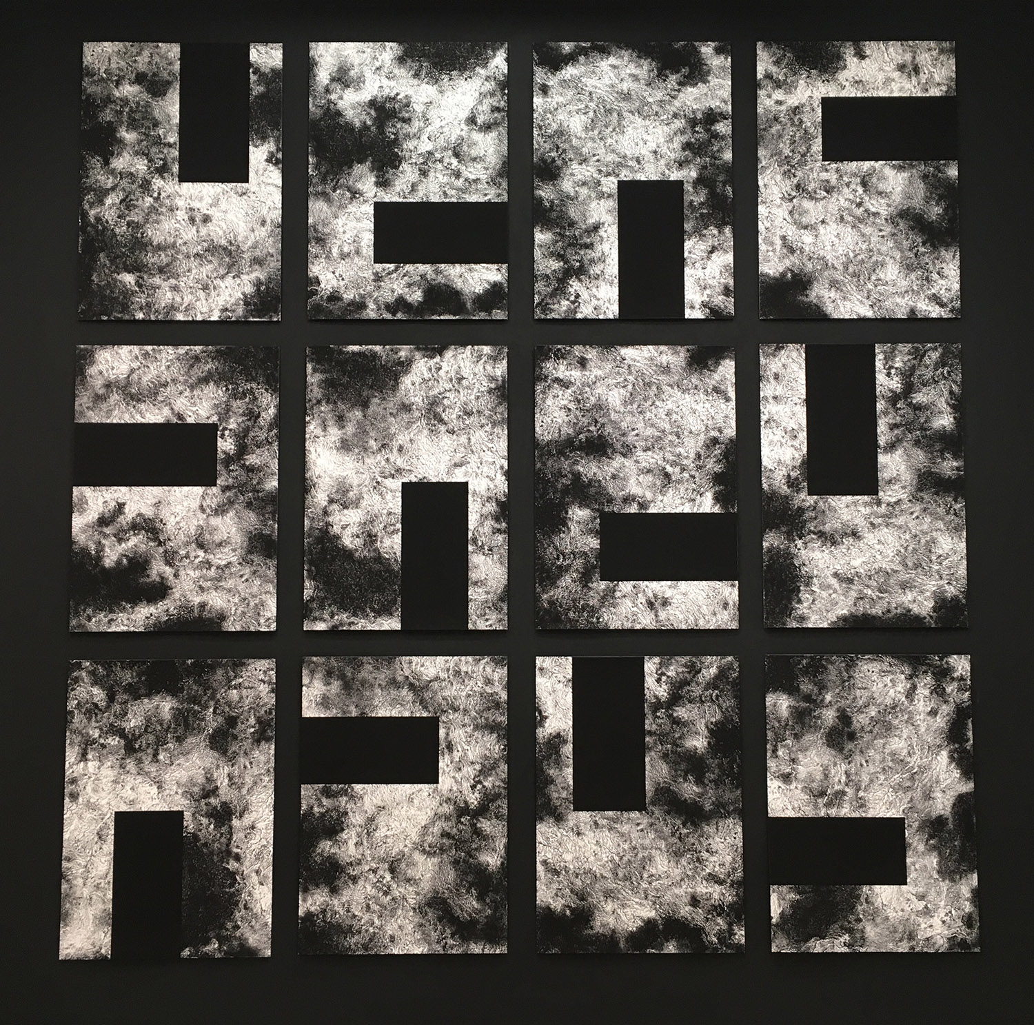 Por un lado, la litografía como técnica de partida que, a su vez, es combinada con otros procedimientos gráficos como la impresión digital, el grabado en relieve o la serigrafía. En segundo lugar, Francisco Velasco utiliza el papel como soporte principal y casi exclusivo de la estampa. Finalmente, el tercer punto a destacar es la utilización del color negro en sus múltiples gradaciones y matices. Un color que, como se puede comprobar, actúa como nexo conceptual y formal.
