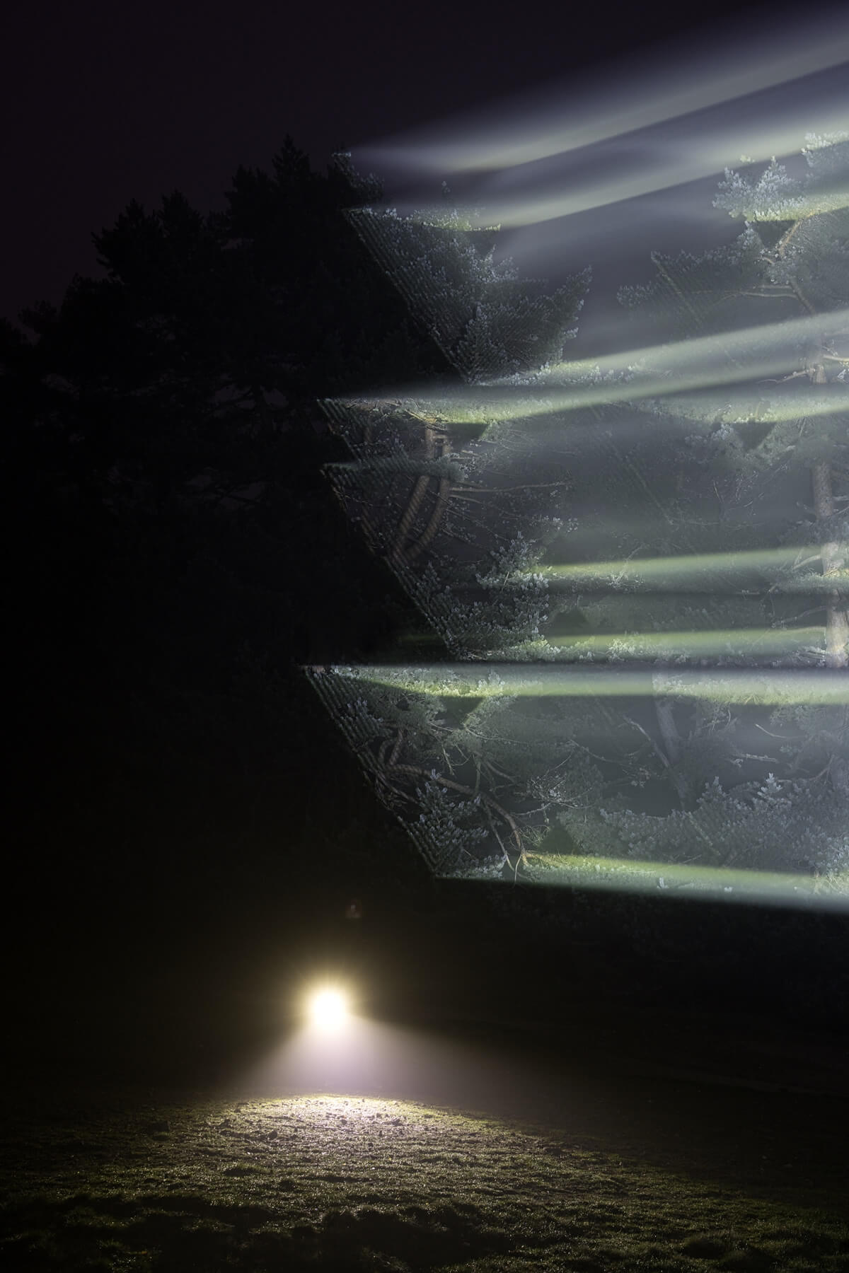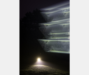 La instalación de luz tiene un carácter inmersivo y de ocupación escultórica del espacio, creando un flujo de imágenes abstractas en cambio constante, que se proyectan a través de capas de telas semitransparentes, dando lugar a un espacio meditativo diseñado para ser habitado, al menos transitoriamente, por el espectador.