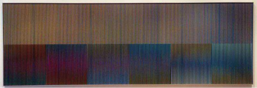 Fisicromía nº 986 (1979) se halla en relación con una serie iniciada y presentada por vez primera en el Museo de Bellas Artes de Caracas en el año 1960. En ella destaca cómo las estructuras revelan diferentes comportamientos y otras condiciones del color. La percepción de la obra cambia en función del desplazamiento del propio espectador, generando atractivas variaciones e incluso proyecciones del color en el espacio.