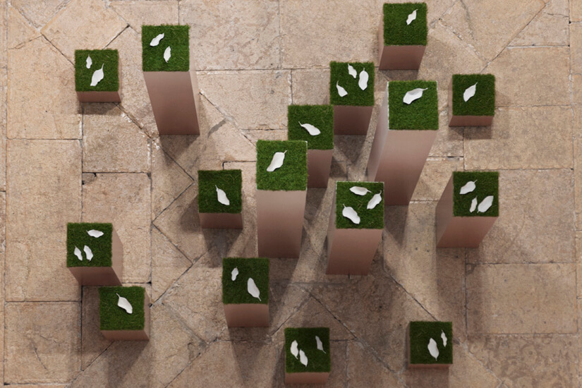 Precisamente en esta línea de trabajo ahonda Hacia la luz. Hasta la ausencia, exposición que se prolongará en la pinacoteca hasta principios de 2017. Este proyecto se concreta en tres piezas (dos instalaciones y una serie de fotografías) plenas de resonancias líricas que reflejan el proceso de erosión natural de delicadas hojas materializadas en porcelana, apreciándose el contraste entre la vida creciente de la naturaleza que las circunda y el residuo o incluso vacío que genera esa operación de desgaste y desmaterialización en una de ellas.