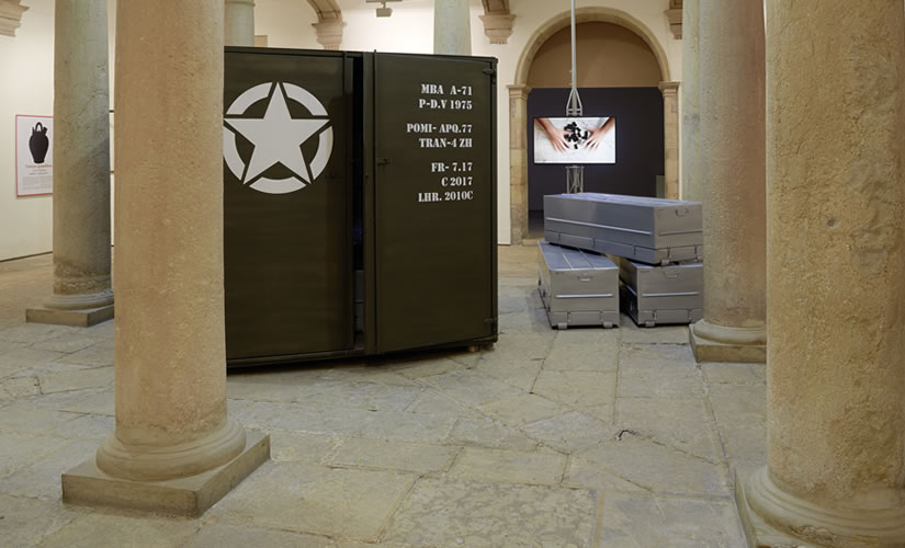 Cuco Suárez, Aquí de nuevo, 2017. Instalación y vídeo Oriente Medio. Fotografía: Marcos Morilla. © Cuco Suárez, VEGAP, Oviedo, 2017.