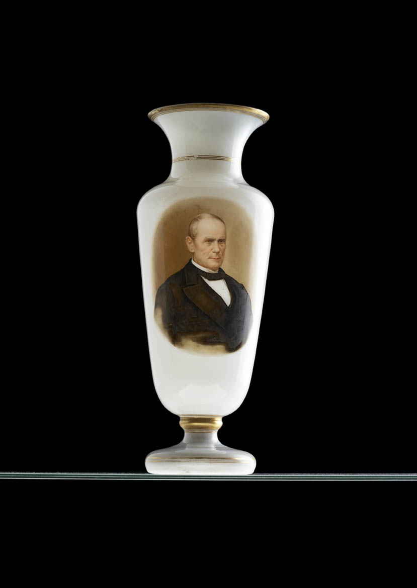 Jarrones con retratos de los fundadores de la Fábrica: Mariano Suárez - Pola, Luis Truan Lugeon y Anselmo Cifuentes