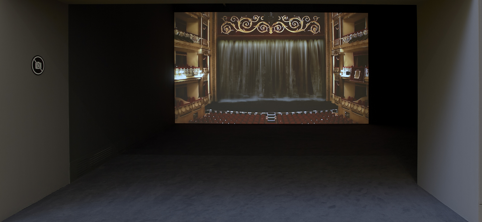 La muestra se abre con un vídeo que muestra el escenario y el patio de butacas del Teatro Campoamor de Oviedo, en el que una enorme catarata cae como si fuera un telón. Se trata de un perfecto resumen introductorio de la exposición porque pone de relieve la naturaleza como cultura y como espectáculo. La naturaleza, tan presente a lo largo de toda la muestra, representada a través del agua y la cultura, por medio del Teatro Campoamor, un lugar especialmente simbólico dentro de la Comunidad Asturiana, ya que es donde se entregan los Premios Príncipe/Princesa de Asturias.