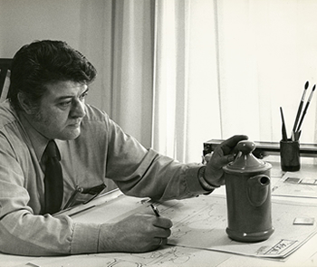 Luis Fumanal Otazo en su despacho en la fábrica de loza de San Claudio hacia 1974. Archivo familiar.