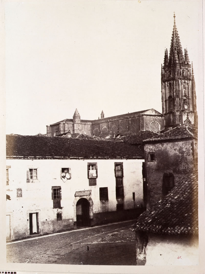 Charles Clifford, Vista de la calle San Juan y la torre de la catedral de Oviedo, 1854