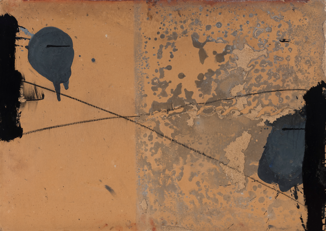 En el caso de Signe i matèria, las cualidades matéricas del cartón que hace de soporte adquieren un especial protagonismo. Sobre su textura, los grafismos y las manchas, así como el residuo de la otra materia presente, organizan la composición. Cuando fue ejecutada, habían transcurrido seis años desde Gran óvalo y en ella pueden advertirse algunas de las características de la evolución del pintor, como un mayor desenfado en la ejecución, dentro de su sobriedad, más apertura sensorial, y, sobre todo, la presencia de elementos caligráficos y tachistas en equilibrio expresivo con la pura materia.