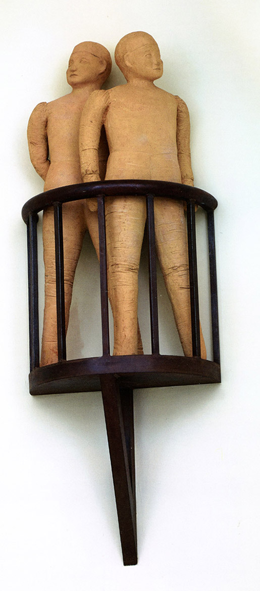 Por otra parte, y como suele ser habitual en su producción, juega un papel fundamental su ubicación y su relación con el espectador, es decir, la «puesta en escena» de la obra en el espacio expositivo. En este sentido, la fusión entre escenografía teatral, espacio arquitectónico y figura escultórica contribuye a potenciar un relato simbólico donde prima la densidad psicológica y el interrogante espacial.
